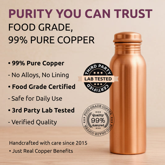 For over 5,000 years, copper has held a place of honor—from ancient Egyptian palaces to sacred Indian temples. Celebrated for its natural cleansing properties, it has been used for centuries to purify water and infuse it with essential trace minerals that promote vitality and wellness. Even today, copper’s enduring benefits continue to support overall health, metabolism, and energy—helping you look and feel your best. Each piece is crafted from premium, laboratory-tested pure copper to ensure unmatched quality and authenticity