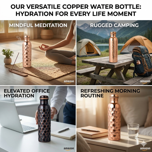 100% Pure Ayurvedic Copper Water Bottle - Classic Glossy Finish