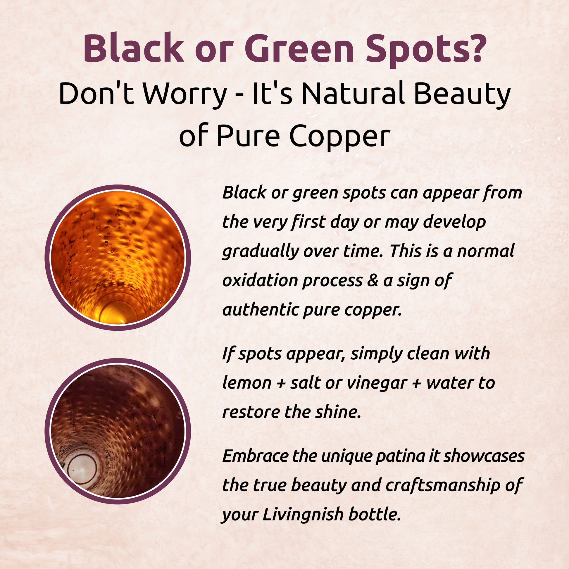 These are normal characteristics of handcrafted copper products and do not affect performance.
